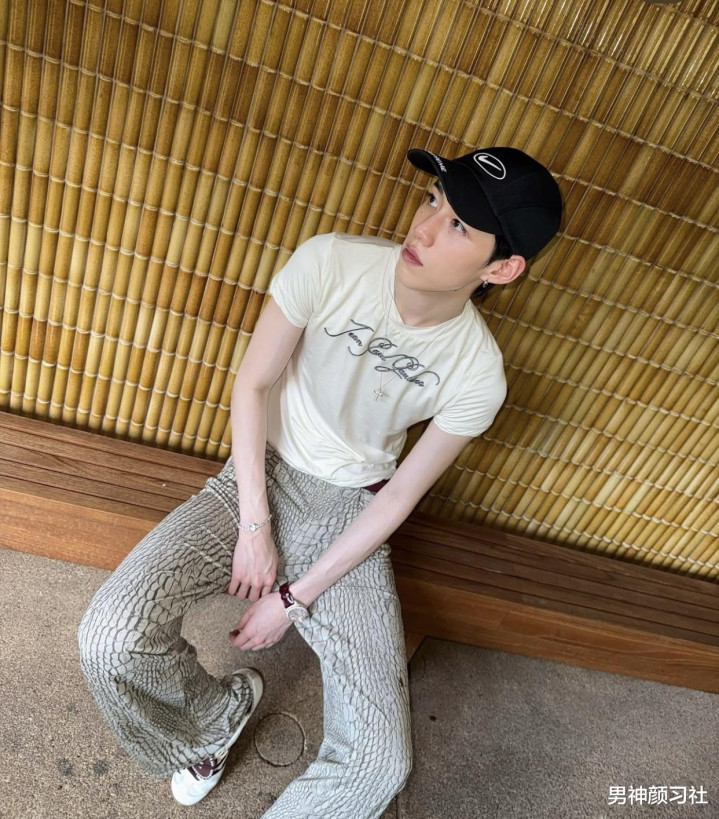 这种浅色印花裤,也有不少人穿。和童趣感短袖尤其搭,两个都有一点花,组合在一起瞬间让大家觉得你这个人很有前卫的感觉。他还会反戴棒球帽,look上更能让大家觉得你是很有范的。