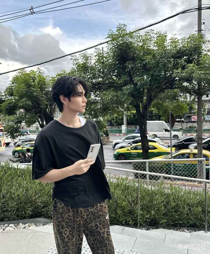 如果你整个人更有能力一点呢,可以挑战一下更有特点的裤子。比如说像这种豹纹裤,粗看非常难穿,但其实大家会觉得你这个人还挺有驾驭能力。搭黑色短袖也比较有风格,还不会过于单调。